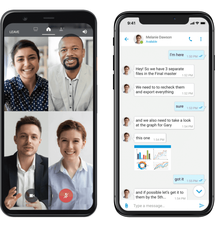 The Unite mobile application transforms the user’s mobile phone into an essential collaboration tool for on-the-go productivity. Android and iOS users can place and receive calls, see who is available, send chats and text messages, sync contacts from their mobile device and manage voicemails all from one application—anytime, anywhere.