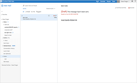 You can use notes to keep track of your thoughts. With Exchange powering your email, your notes are actually stored in the cloud so you can view and edit them on all your devices.