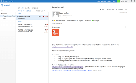With Exchange 2013, OWA is optimized for a touchscreen experience plus offline access.